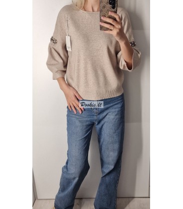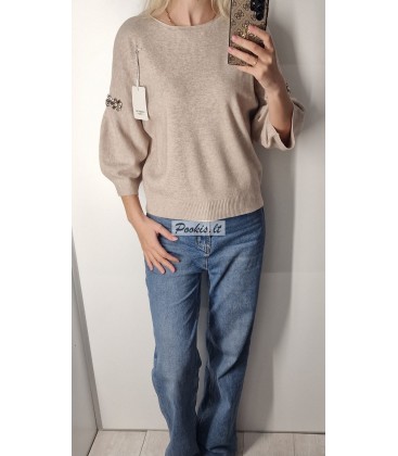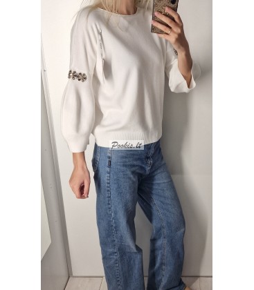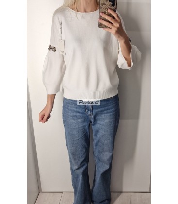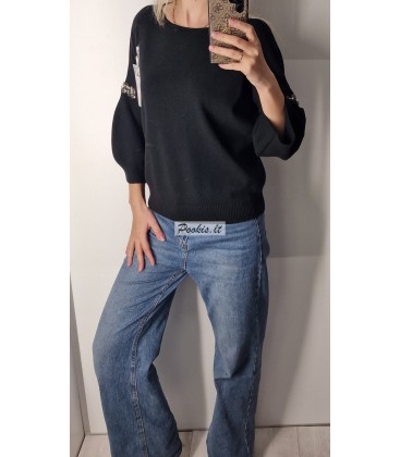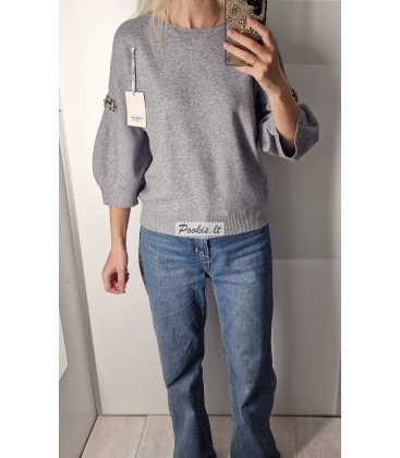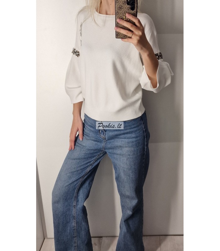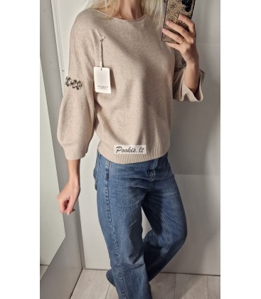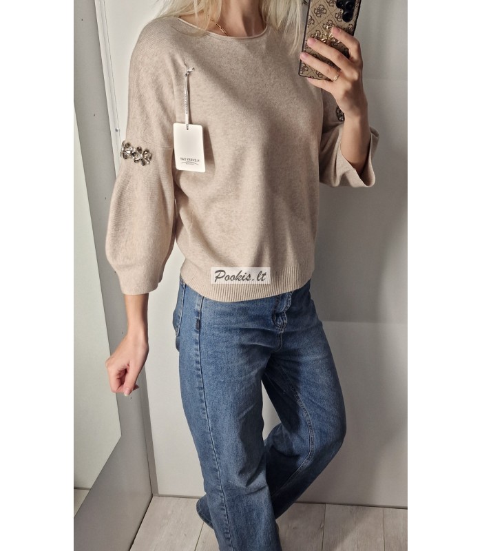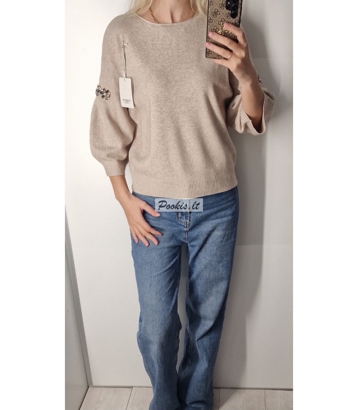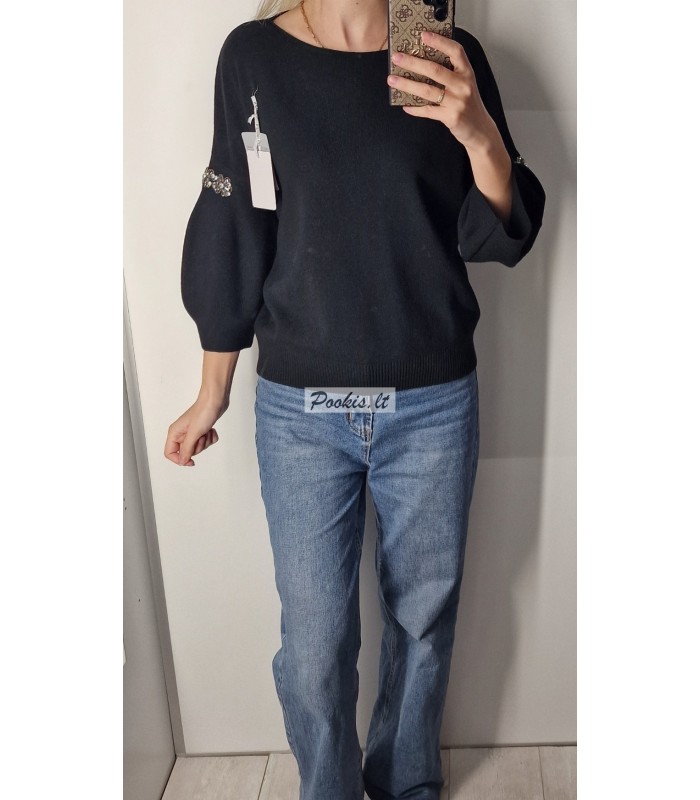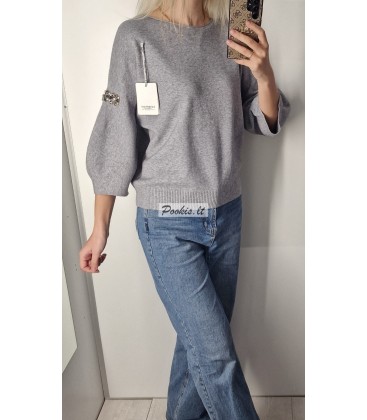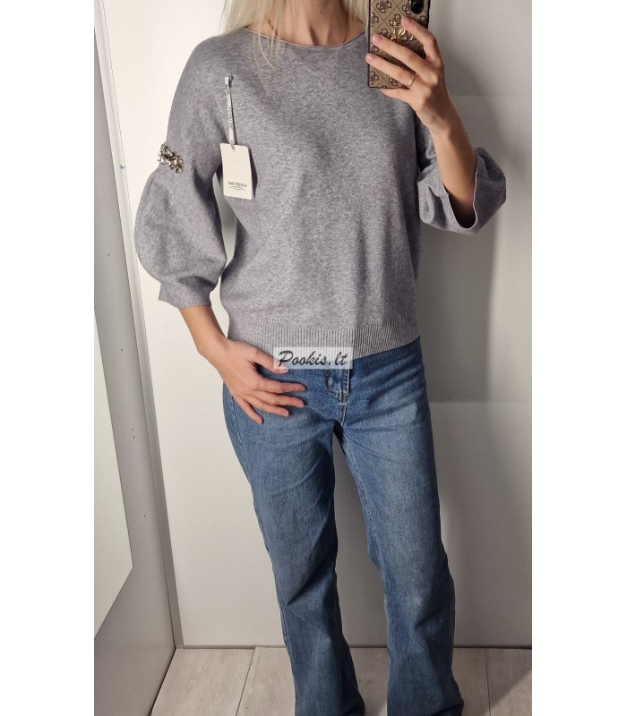 Dailus trumpas megztinis su 3/4 ilgio pūstomis rankovėmis. Reglano pečiai.