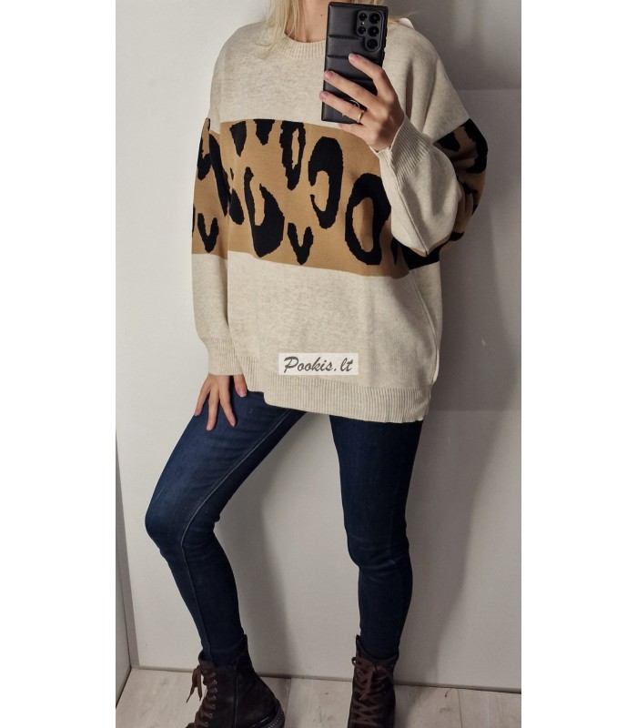 Didesnio dydžio ilgesnis plonas raštuotas megztinis