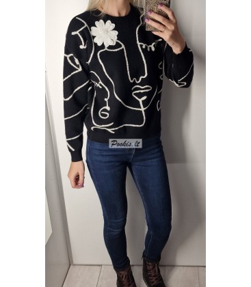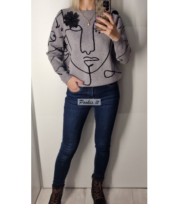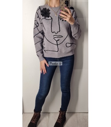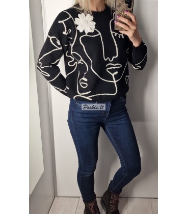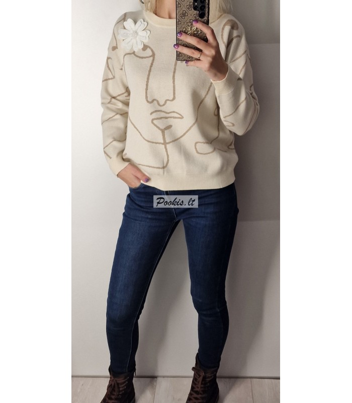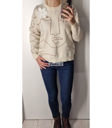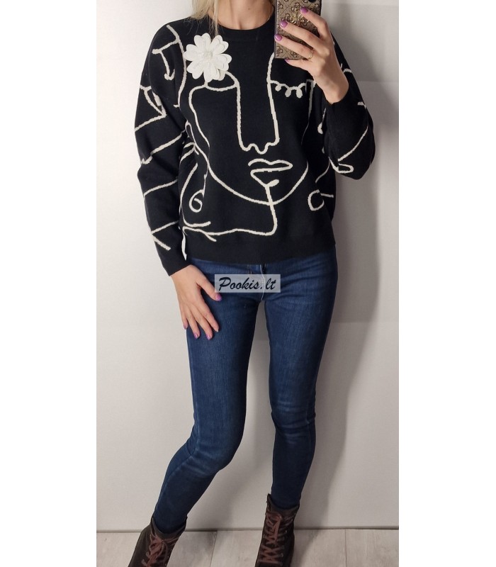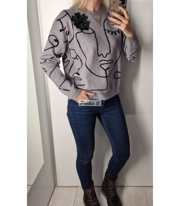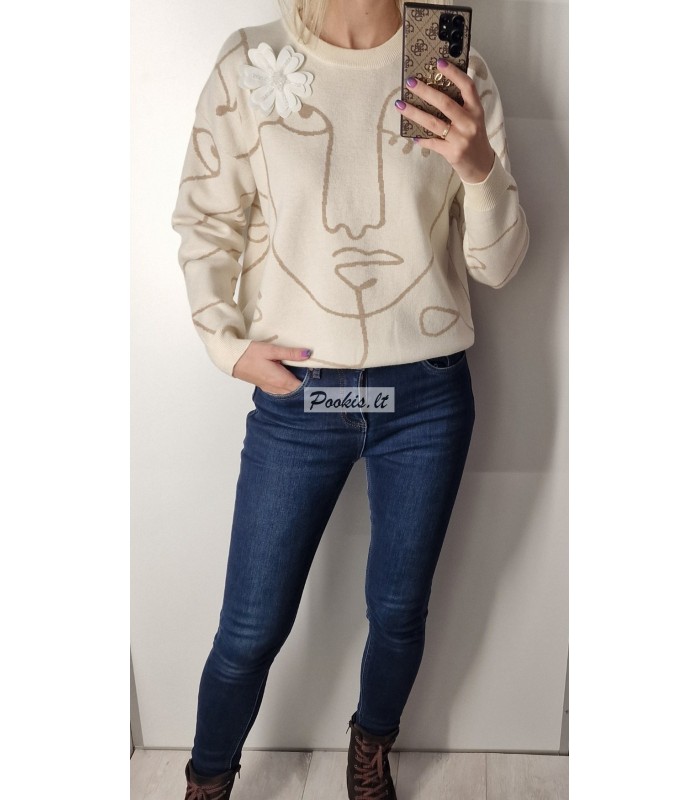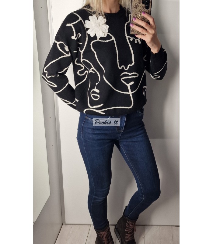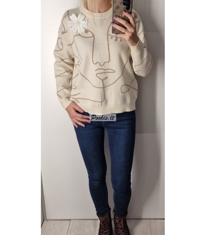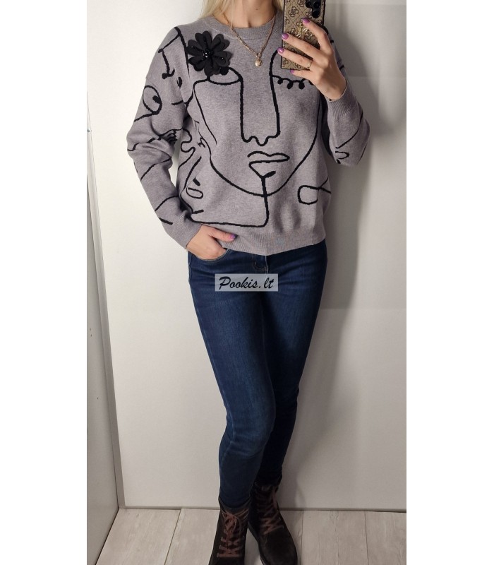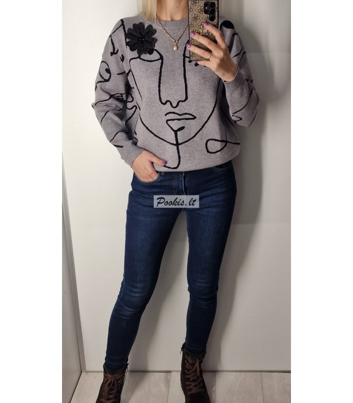 Dailus raštuotas megztinis su papuošimu.