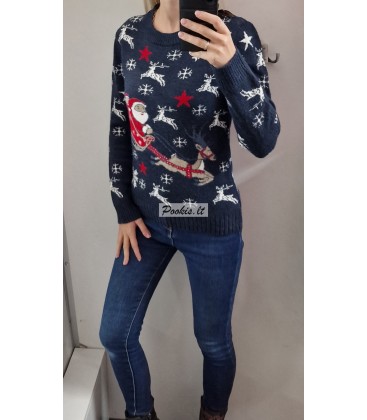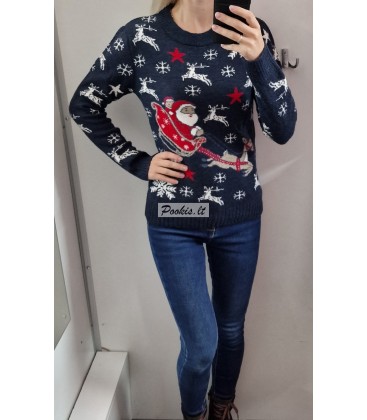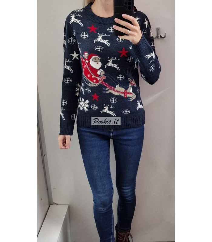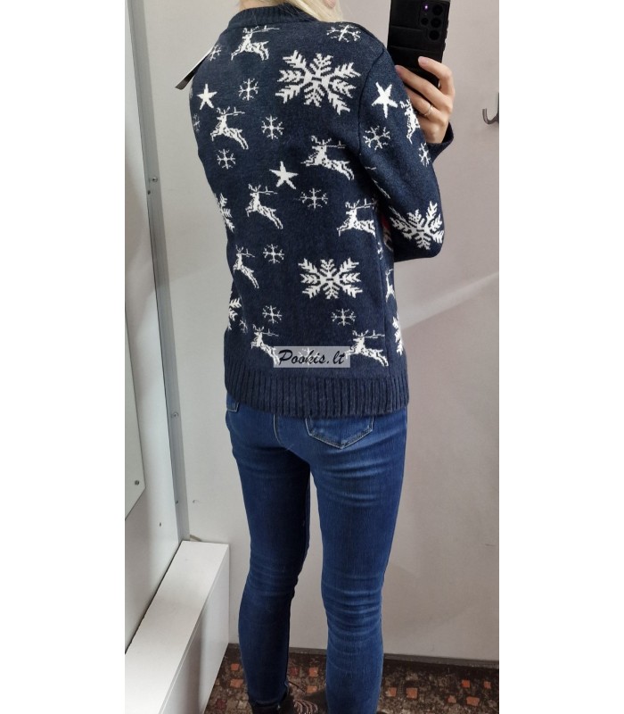 Dailus raštuotas trumpas šiltas megztinis su briedžiais.