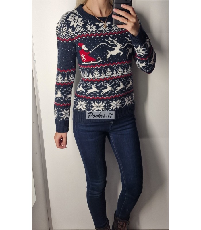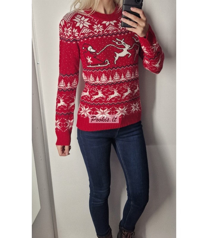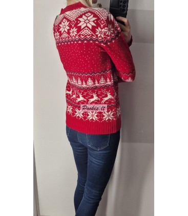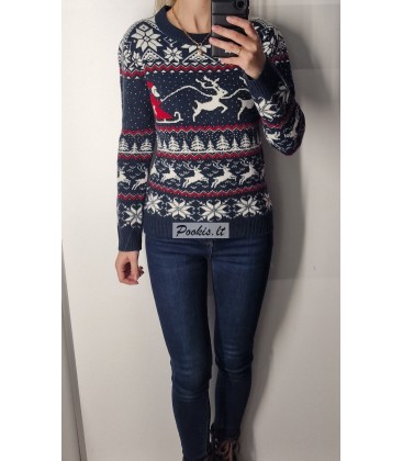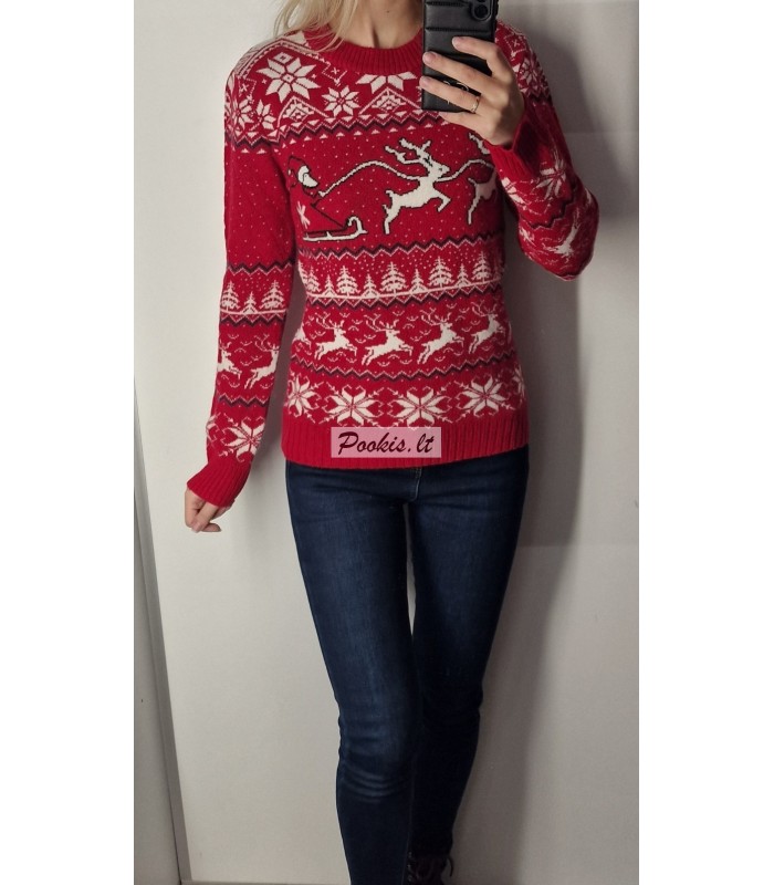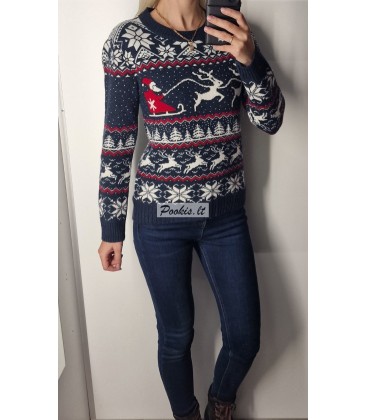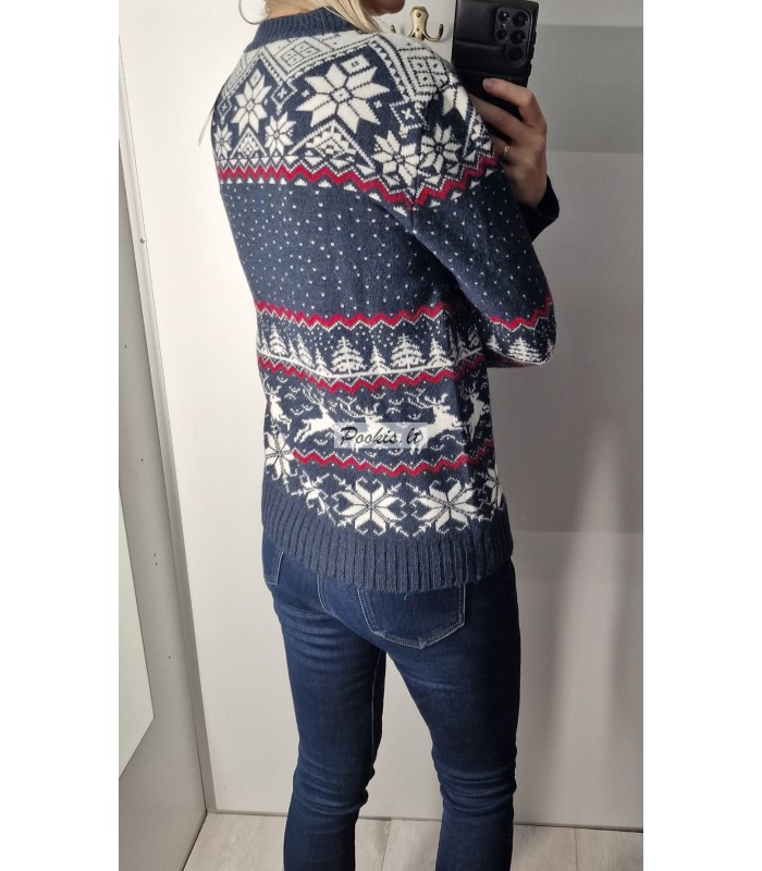 Dailus raštuotas šiltas megztinis su briedžiais.