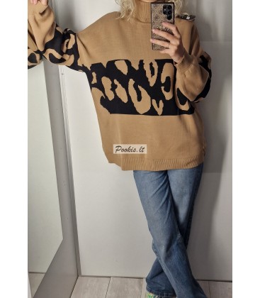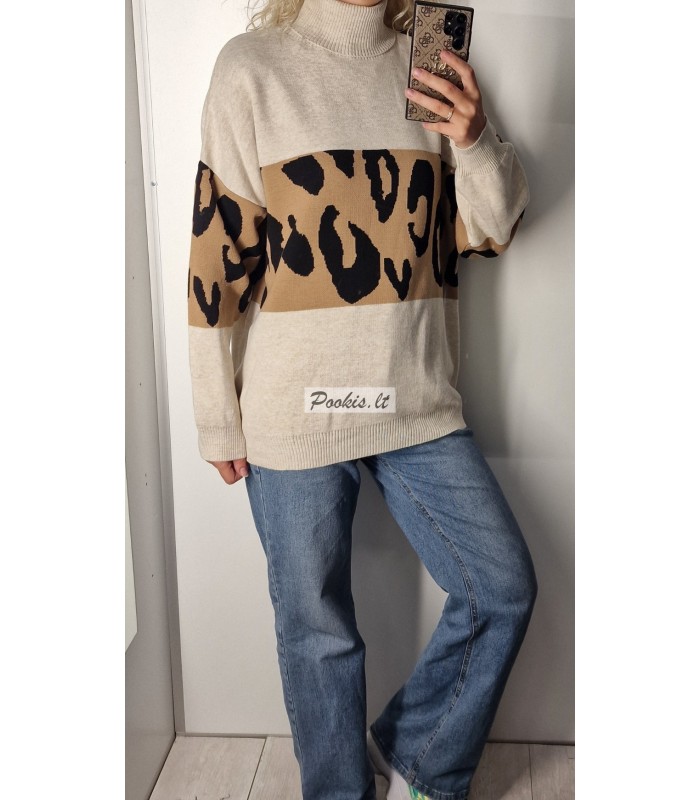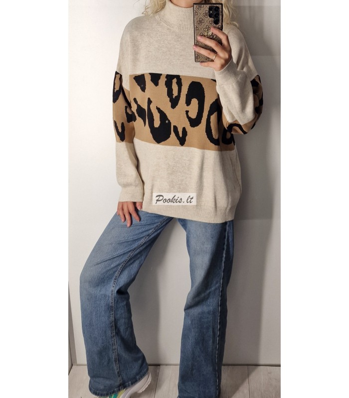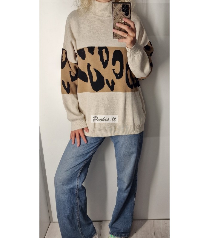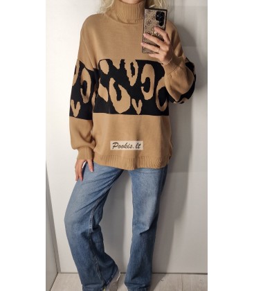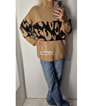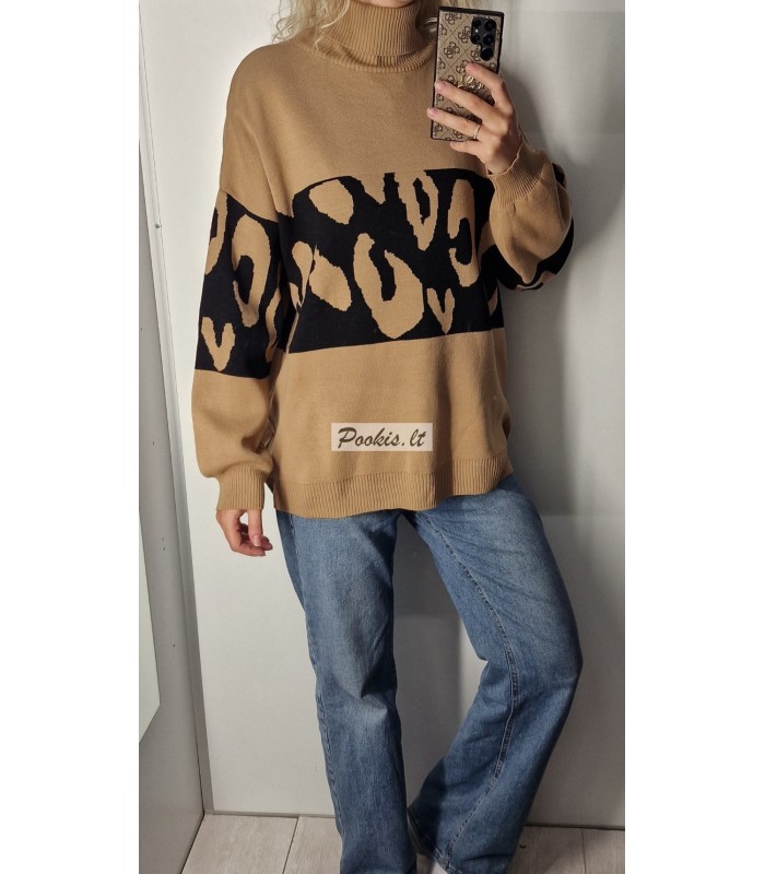 Dailus didesnio dydžio ilgesnis megztinis su aukštu kaklu.